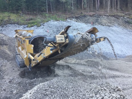 Diese raupenmobile Trommelsiebanlage ist auf Gund ihrer Konstruktion besonders aggressiv und kann auch bindige Böden sieben.